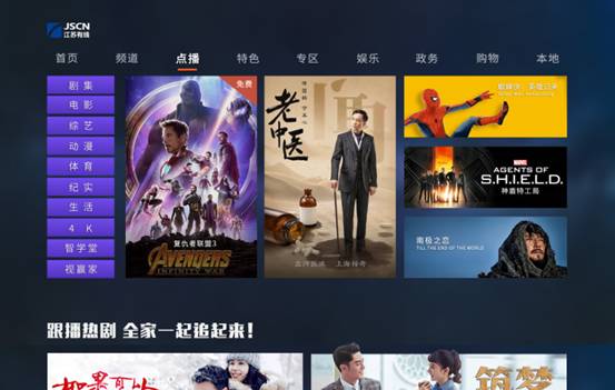 江蘇有線點播版塊為用戶提供海量節目點播服務,每周近千小時的節目更新量,讓收視更精彩。電視劇欄目網羅了國產劇收視精華,港臺劇劇集經典,日韓劇流行脈搏,歐美劇巨作前沿。電影欄目則涵蓋火爆刺激的歐美大片,唯美浪漫的日韓文藝片,深沉含蓄的世紀經典片,無限創意的華語新作。更有動漫、綜藝、體育、文化和新聞諸多內容,分門別類,隨點隨播。