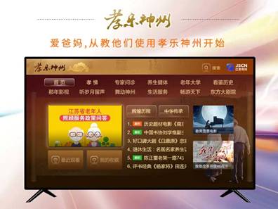 “孝樂神州”是江蘇有線為應對人口老齡化問題,與國家老齡辦共同打造的國內首個專門面向中老年觀眾的全服務平臺,整合最優質的內容和服務資源近10萬小時,設立健康、教育、文化、娛樂四大版塊,十三個欄目,通過線上線下融合的模式,全面、充分、貼心地滿足老年人群對身體健康,生活服務,精神充實,心情愉悅的核心需求。