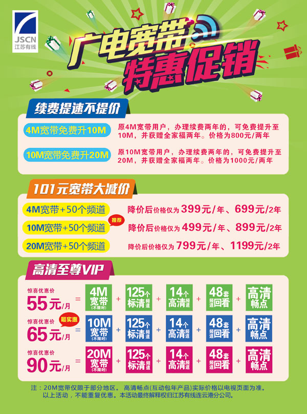 廣電寬帶--以速度和內(nèi)容取勝。在不斷提升速度的同時(shí),以豐富多彩的內(nèi)容,為用戶奉獻(xiàn)高速優(yōu)質(zhì)、價(jià)格實(shí)惠的家庭寬帶服務(wù)產(chǎn)品。