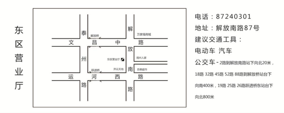 遠郊鄉鎮營業網點: 方巷營業廳:方巷鎮四通北路(沁方園對面) 甘泉營業廳:甘泉鎮香巷路(菜場西大門煙草對面) 槐泗營業廳:槐泗鎮酒甸十六糧店東側 黃玨營業廳:黃玨鎮宏城中路 李典營業廳:李典鎮興豐路(大三元飯店對面) 沙頭營業廳:沙頭鎮人民路(沙頭菜場東大門對面) 頭橋營業廳:頭橋鎮同心路(頭橋菜場南大門) 霍橋營業廳:霍橋鎮富民西街(霍橋菜場向西300米) 新壩營業廳:新壩鎮新興路(新壩農行向南150米) 紅橋營業廳:紅橋鎮弘揚路(紅橋電信局向西250米) 運河人家營業廳:運河人家小區南大門東側 杭集營業廳:杭集鎮九圩路58#(老襪廠對面) 泰安營業廳:泰安鎮鳳凰東路18#(泰安老菜場東面) 公道營業廳:公道鎮人民西路8#(派出所旁) 楊壽營業廳:揚壽鎮樂星西路2#(楊壽自來水廠斜對面向東50米) 楊廟營業廳:楊廟鎮府前路(楊廟影劇院旁邊) 汊河營業廳:汊河鎮華洋西路(汊河農業公司對面) 新區營業廳:新城西路225#(富麗康城南大門斜對面) 運西營業廳:運西鎮通運路78#(一生一世婚慶禮儀公司隔壁) 樸席營業廳:樸席鎮隆覺路(計生辦對面) 瓜州營業廳:瓜洲鎮西康路36#(菜場北大門) 施橋營業廳:施橋鎮揚子西路6#(派出所對面) 八里營業廳:八里鎮亨通南路(政府向南100米) |